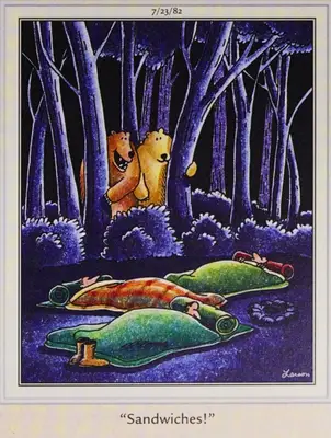 Grupos de campistas duermen perfectamente en sus sacos de dormir. No sé en absoluto que algunos osos los ven como su próxima oportunidad de comidas. La manta es pan y los humanos son carne, por lo que los osos ven sándwiches en sus caminos, esperando que se devoren de emoción.
