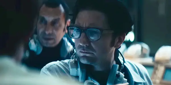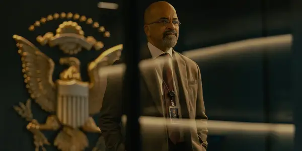 Henry de Jeffrey Wright luciendo serio y parado frente al logotipo de la CIA en la agencia | Jeffrey Wright | Henry |
