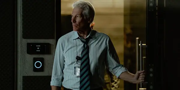 Bosko de Richard Gere se ve intensamente mientras sale de una puerta pesada en la agencia | Richard Gere | Divinamente |