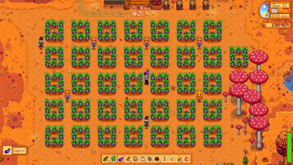 Ocupan un espacio similar a las Alcachofas, pero están disponibles desde su primer año en Valle stardew y se puede cosechar varias veces. Esto le permite obtener beneficios adicionales en comparación con los cultivos de una sola cosecha. También hay un período de rápido crecimiento; Obtendrá su primera cosecha dentro de los 5 días posteriores a la siembra de sus semillas de berenjena y una cosecha nueva cada 5 días después.