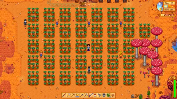 Puedes cultivar un total de 14 cultivos diferentes en otoño y es importante que comiences a planificar tu temporada de otoño antes de que termine el verano. Algunos de los mejores cultivos de la temporada son muy rentables pero tardan semanas en crecer. Tener un plan significa que evitarás desperdiciar oro en semillas que no crecerán a tiempo antes de que llegue el invierno. Finalmente, asegúrese de preparar su granja con fertilizante . Sus efectos pueden cambiar las reglas del juego, pero también es fácil olvidarse de usarlo.