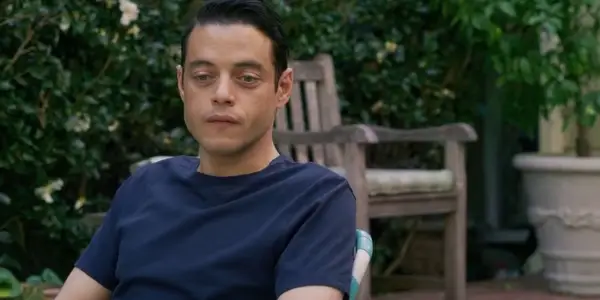 Baxter de Rami Malek sentado afuera en las pequeñas cosas.