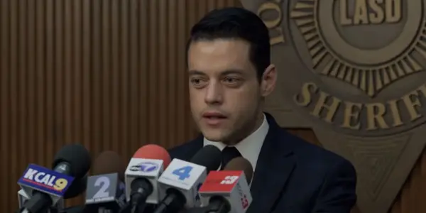 Rami Malek como Baxter en las pequeñas cosas que dan una conferencia de prensa