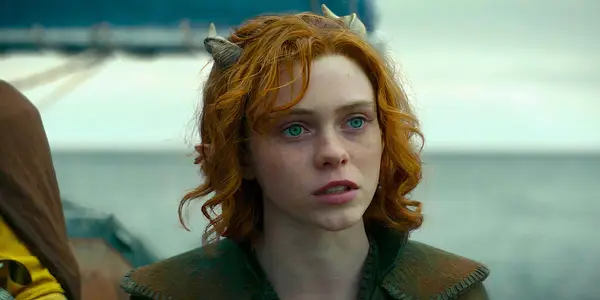 Sophia Lillis expresando grave preocupación en una escena de Dungeons and Dragons Honor entre los ladrones